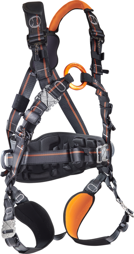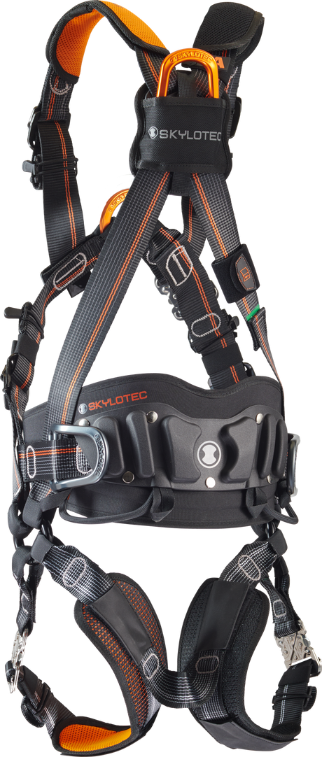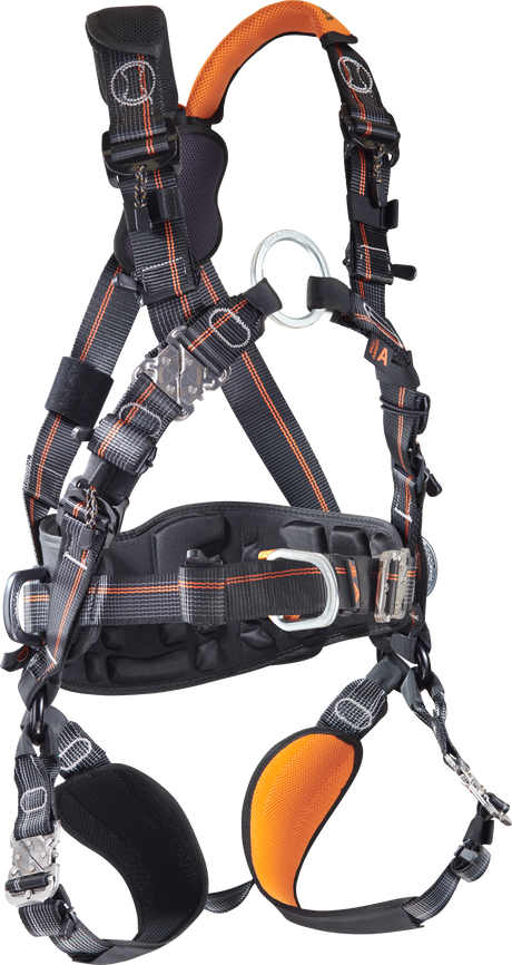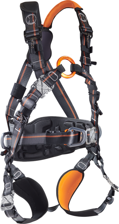 Anschlagpunkte: Sternale Ösen oder Schlaufen im Brust- oder Rückenbereich zur Befestigung von Sicherheitsleinen, Falldämpfern und Absturzsicherungssystemen.