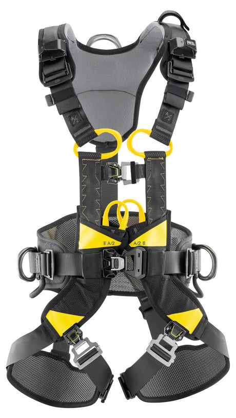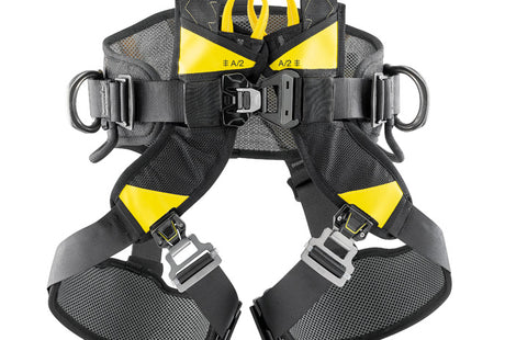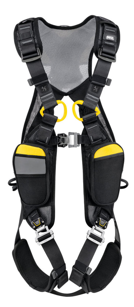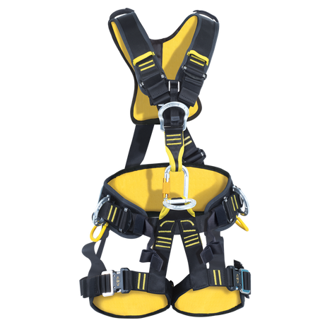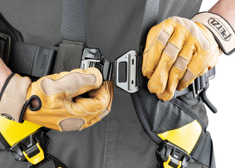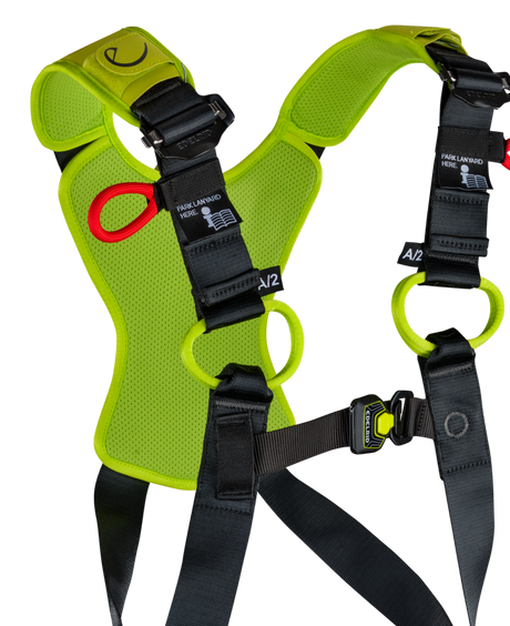 Anschlagpunkte: Sternale Ösen oder Schlaufen im Brust- oder Rückenbereich zur Befestigung von Sicherheitsleinen, Falldämpfern und Absturzsicherungssystemen.