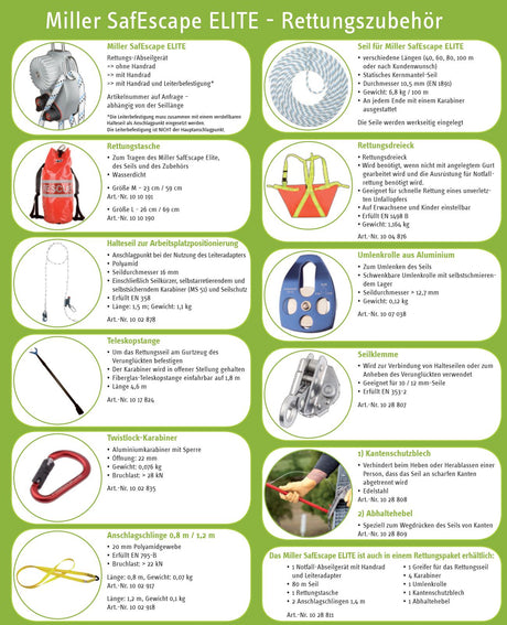 Sie sind Teil der Persönlichen Schutzausrüstung gegen Absturz (PSAgA) und umfassen unter anderem Abseilgeräte, Rettungshubeinrichtungen und andere Spezialausrüstungen.