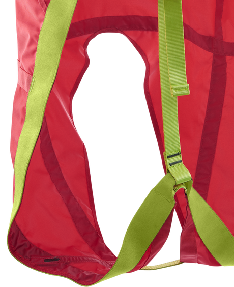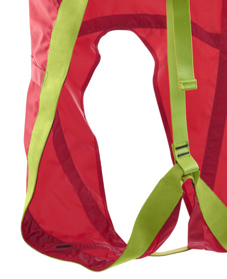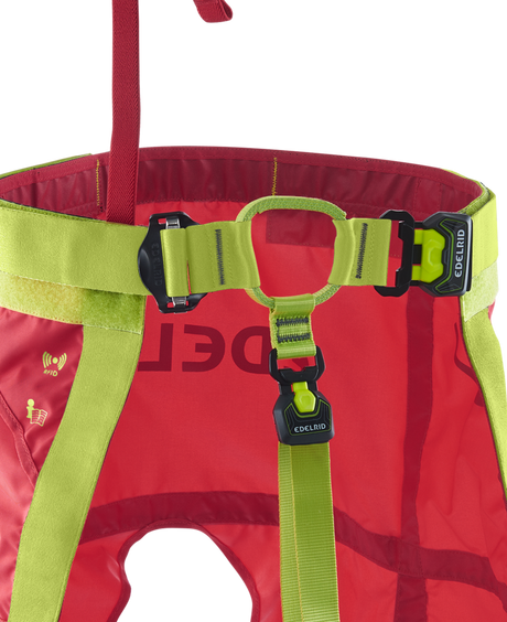 Design: Dreieckige Form, die um den Körper der zu rettenden Person gelegt und dann gesichert wird, um diese im Sitzen abzuseilen.