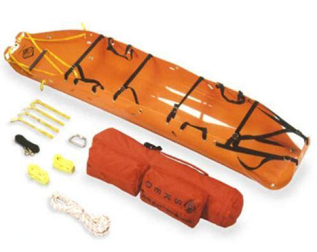 Korbschleiftragen: Robuste, korbförmige Tragen, die den Patienten vollständig umschließen und so sicheren Transport über unebenes Gelände oder beim Abseilen ermöglichen.