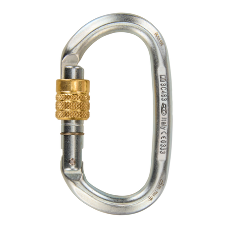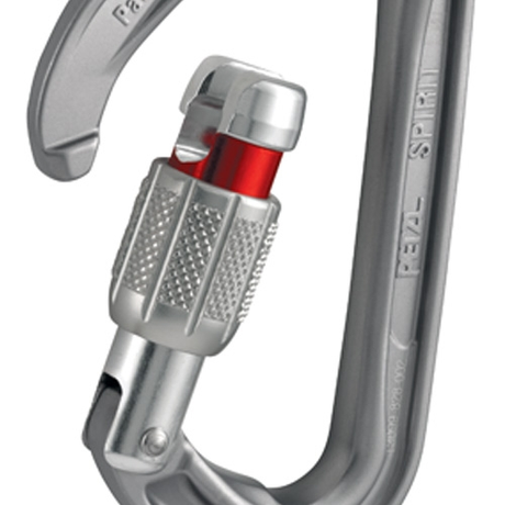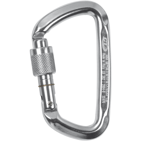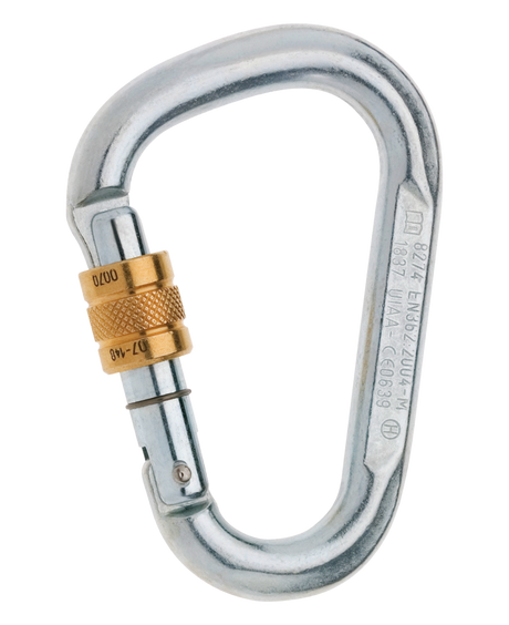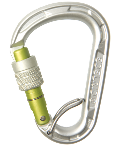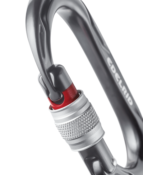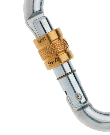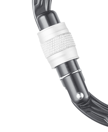 Bei Arbeiten mit hoher Vibration ist das Verwenden von Schraubkarabinern nicht zu empfehlen, da sich der Schraubverschluss eigenständig Öffnen kann.