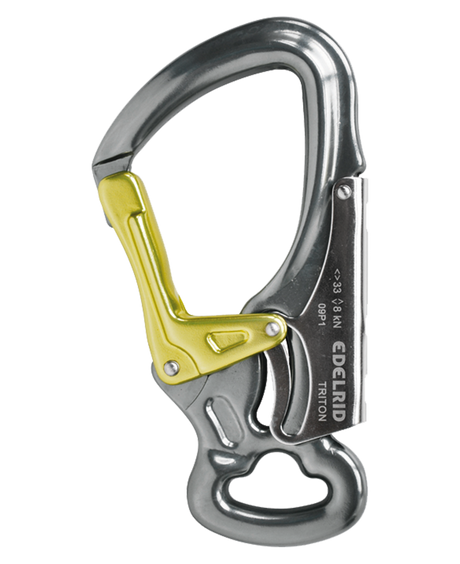 Systemkarabiner sind darauf ausgelegt unterschiedliche Systeme miteinander zu verbinden. Meist haben sie größere Schnappöffnungen, die das Ein- und Aushängen vereinfachen.