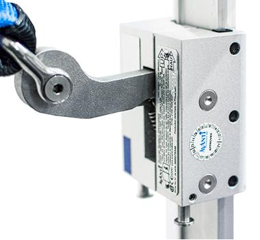 Wenn es zu einem Abrutschen des Servicemittarbeiters kommt, sperrt der Läufer sofort und verhindert so einen Absturz. Der Eagle DS Runner ist zusätzlich mit einem Falldämpfer ausgestattet, um den Fangstoß im Falle eines Sturzes möglichst gering zu halten und so ernste Verletzungen zu verhindern.