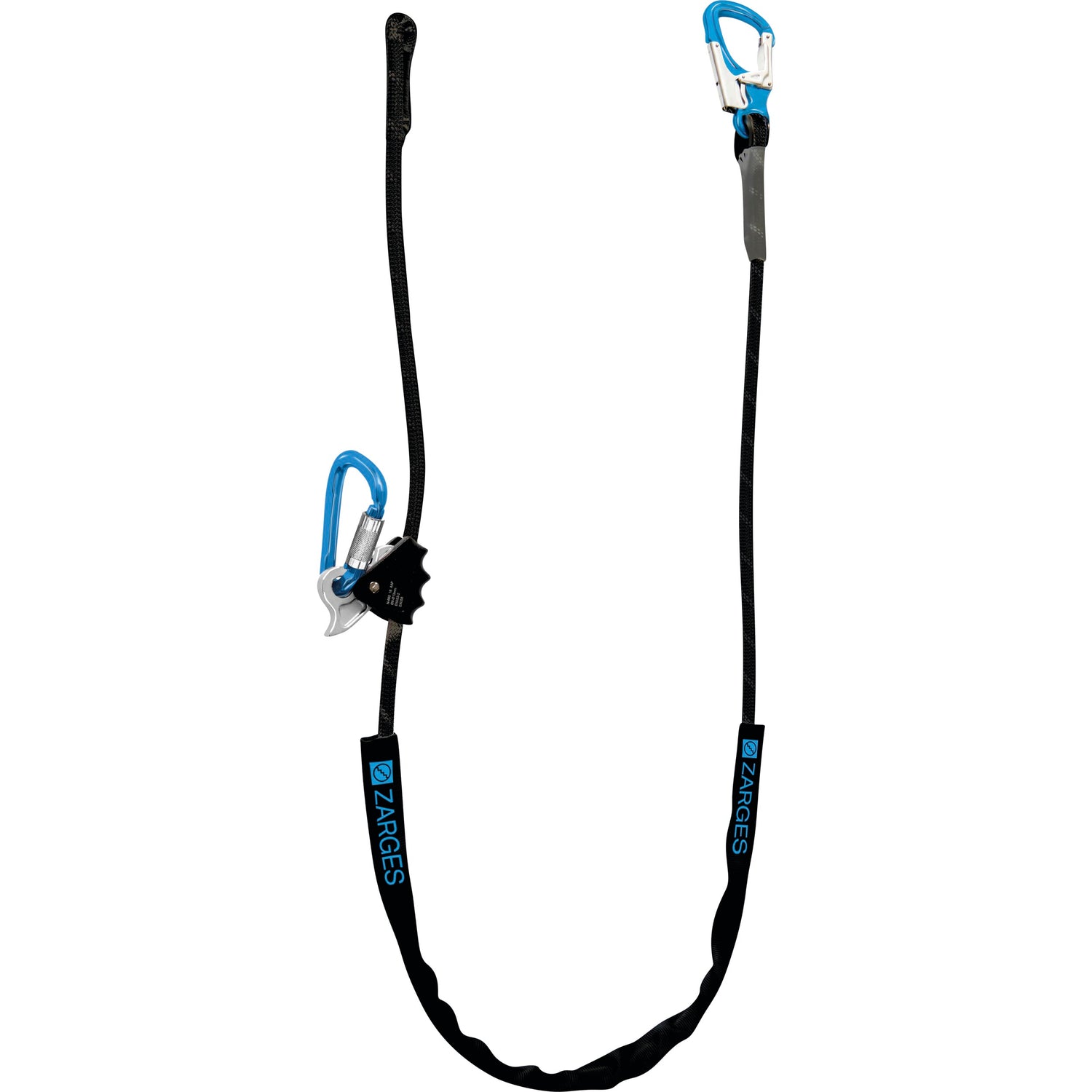 Das Verbindungsmittel ermöglicht eine präzise Einstellung für eine stabile und komfortable Arbeitsposition. Ein integrierter Kantenschutz schützt das Seil vor Abrieb an rauen Kanten und sorgt für ein leichtes Durchführen des Seils.