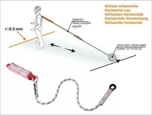 Dieses Höhensicherungsgerät - Cobra 30 - von Camp verfügt über eine Rückholvorrichtung, eine Falldämpfer und einen drehbaren Karabiner. Diese Absturzsicherung ist für die horizontale/schräge Verwendung dank des externen Falldämpfers zertifiziert. Die Seillänge der Absturzsicherung beträgt 30 m.