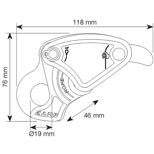 Die große Einhängeöse ermöglicht es den eingehangenen Karabiner komplett zu drehen. Der Körper und der Hebel sind aus solide geschmiedeter Aluminiumlegierung gefertigt und alle mechanischen Teile sind aus Edelstahl in Mikrofusion gefertigt. Eine Verlängerung mit Fingerauslöser ermöglicht ein direktes Einwirken auf die Nocke, um den Seildurchlauf bei begrenzter oder nicht vorhandener Lastsituationen zu ermöglichen.