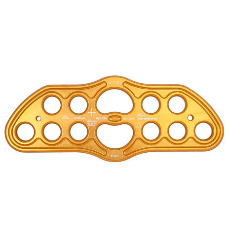 Diese Rigging Platte von DMM hat eine klare Aufgabe: sie soll uns die Übersicht erleichtern, wenn es mit der Seilspannung mal etwas komplexer wird.