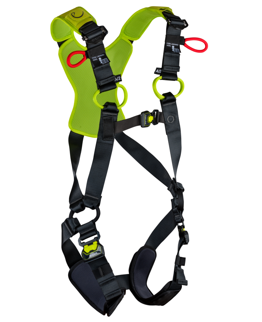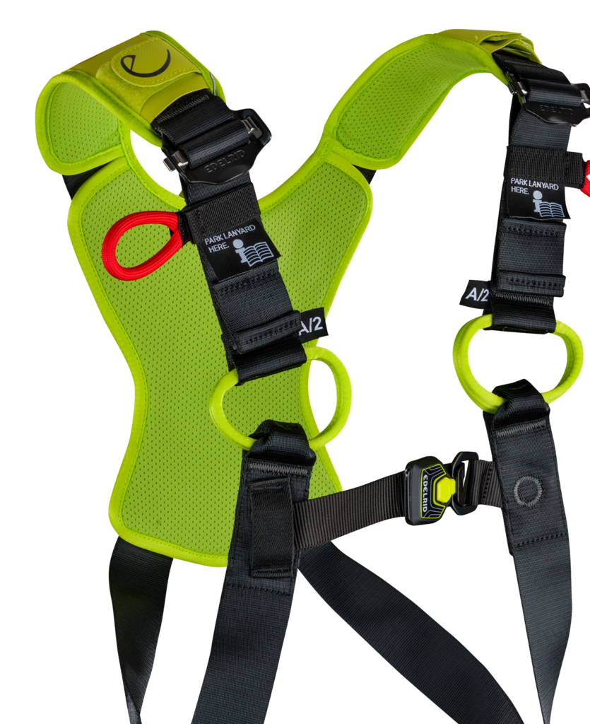 Der leichteste Gurt aus der Flex Reihe von Edelrid zeichnet sich durch sein geringes Gewicht aus, ist einfach einzustellen und hat einen passgenauen Sitz. Der Gurt besteht aus 3D Mesh mit geschlossener Oberflächenstruktur, wodurch ein Festsetzen von Schmutz und Spänen verhindert wird und gewährleistet eine gute Luftzirkulation. Die Beinpolster sind abnehmbar und die Schulterpolster sind mit einer RFID Tasche, einem Beschriftungsfeld und einer Befestigungsmöglichkeit für ein Funkgerät ausgestattet. An den Schulterträgern befindet sich eine Easy Glider Schnalle für ein leichtes Verstellen und abnehmbare Strapkeeper für sauberes Verstauen der Bänder.