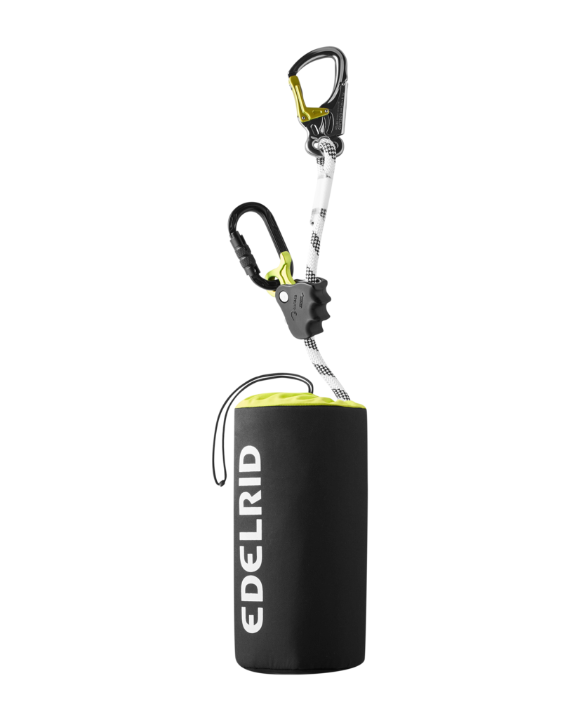 Das kompakte Sicherungsgerät läuft auf einem robusten Kernmantelseil. Es ist im Aufstieg sehr leichtgängig und wird inklusive zwei Karabiner geliefert. Der DSG Triton Karabiner mit intuitiver und sicherer Handballensicherung dient zur Befestigung des Seils an der Struktur. Der Oval Power 2500 Karabiner mit Triple-Verschluss am Sicherungsgerät dient zur Befestigung am Gurt. Das Seil des Ombilix ist in extrem robuster Kernmantelkonstruktion gefertigt und lässt sich bei Bedarf austauschen was die Lebensdauer deutlich erhöht. Ab der 10 m Version wird das System inklusive eines Beutels zur Aufbewahrung und zum Transport geliefert.