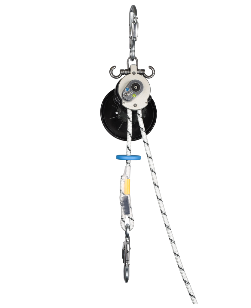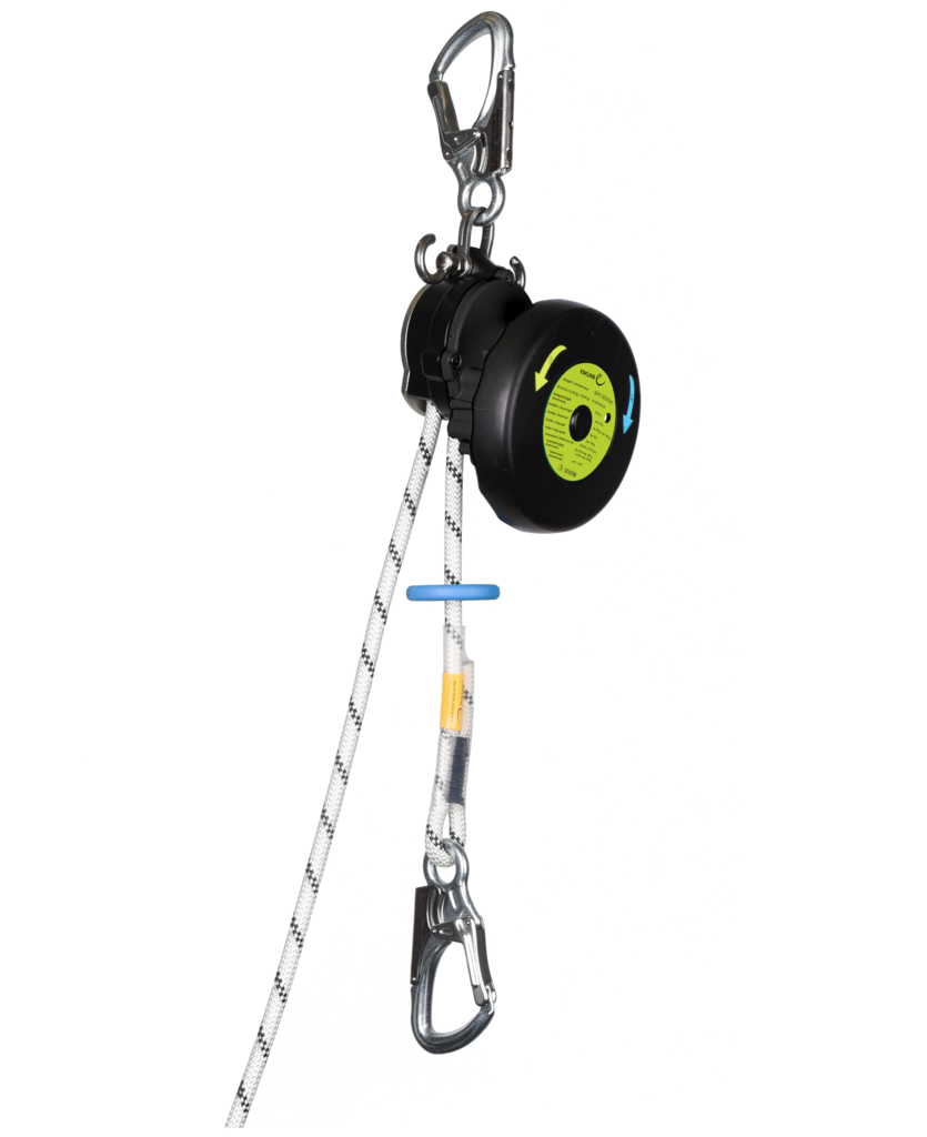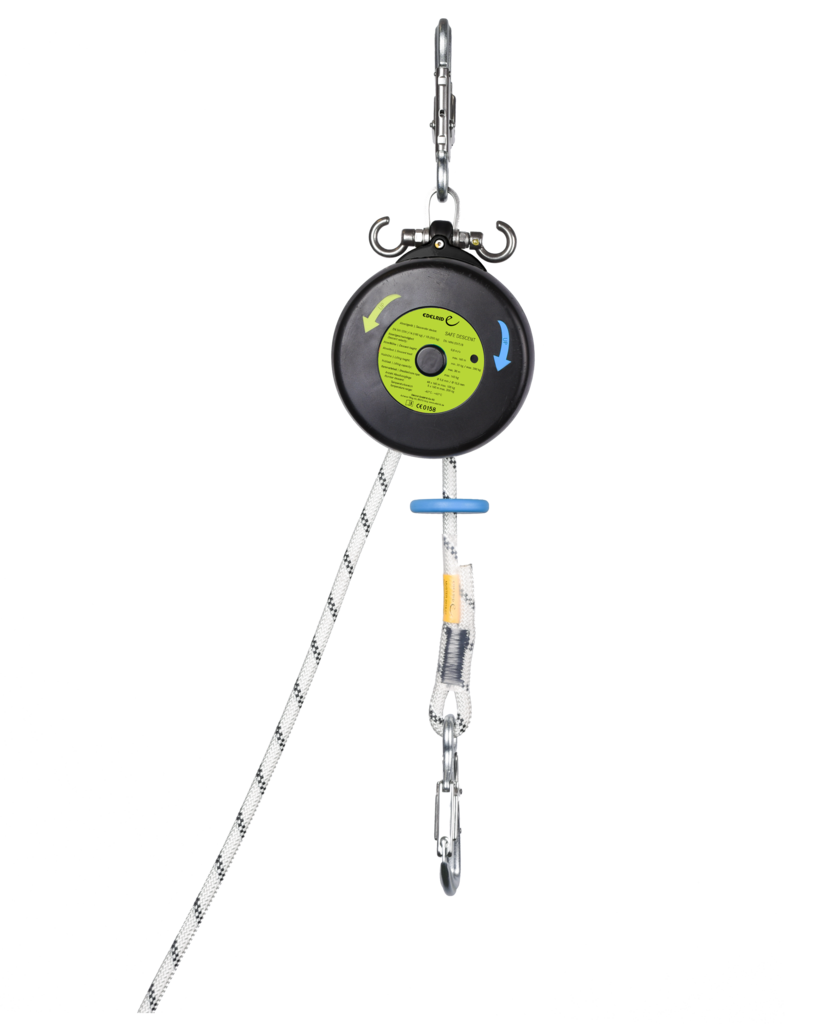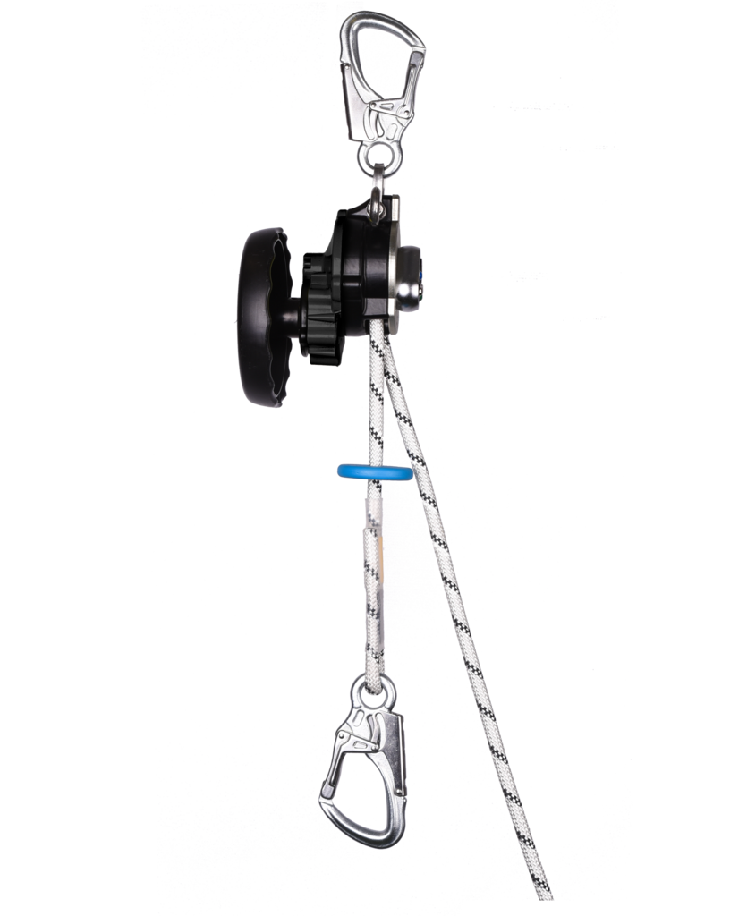 Dieses innovative Abseil- und Rettungsgerät von Edelrid ist ideal für den Einsatz als Arbeits- und Notfallgerät auf Anlagen wie z. B. Windkraftanlagen oder Hochregalläger. Die patentierter Rücklaufsperre in Kombination mit dem Handrad erlauben die Rettung einer verunfallten Personen. Die Hubfunktion ermöglicht die Entlastung der Sicherungskette bzw. Kraftübertragung auf den Safe Descent für das anschließende sichere Ablassen. Das Gerät ist mit einer automatischen Rücklaufsperre (Ratschen-System) zum sicheren Ablassen und einer Rutschkupplung gegen Fehlbedienung ausgestattet.