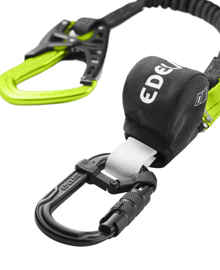 Ein leichtes und kompaktes I-Verbindungsmittel von Edelrid. Der dehnbare Arm verkürzt sich für optimales und einfaches Handling beim Klettern.