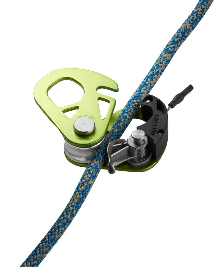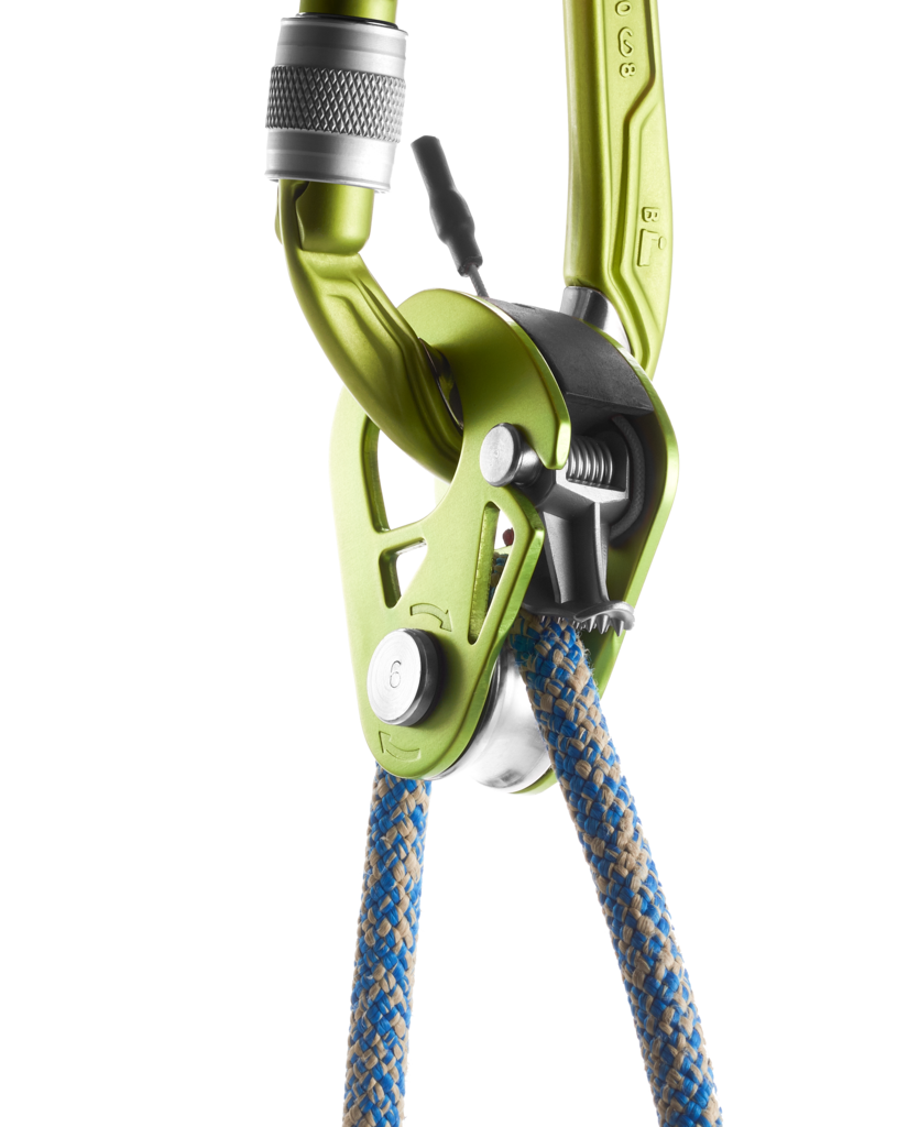 Diese ultraleichte Umlenkrolle wurde zum Heben von Lasten, zur Spaltenbergung oder als Notfallseilklemme konzipiert. Die Rücklaufsperre der Rolle kann in der geöffneten Position fixiert werden, um sie als einfache Umlenkrolle zu nutzen. Die Spoc hat einen sehr hohen Wirkungsgrad Dank der kugelgelagerten Rolle aus Aluminium. Der Klemmnocken der Rolle wurde so konzipiert, dass er einen optimalen "Biss" auch auf vereisten oder verschmutzten Seilen hat.