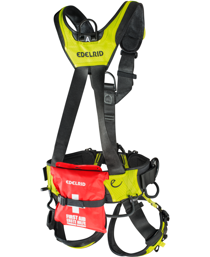 Der Hüftgurt wird mittels Klettverschluss an den vertikalen Rückenbändern fixiert. Dadurch kann beim Tragen von schwerem Material die Last optimal auf die Schulterträger übertragen werden. Gleichzeitig ermöglicht die Klettverbindung eine schnelle Einstellung des Abstandes zwischen Hüftgurt und Beinschlaufen. Die Beinschlaufen besitzen eine von Klettergurten inspirierte, dreidimensionaler Formgebung. Zusammen mit den Elastikeinsätzen vorne ermöglichen sie eine maximale Bewegungsfreiheit und einen angenehmen Hängekomfort.- Bruststeigklemme eingenäht für ein kompromissloses Steigen