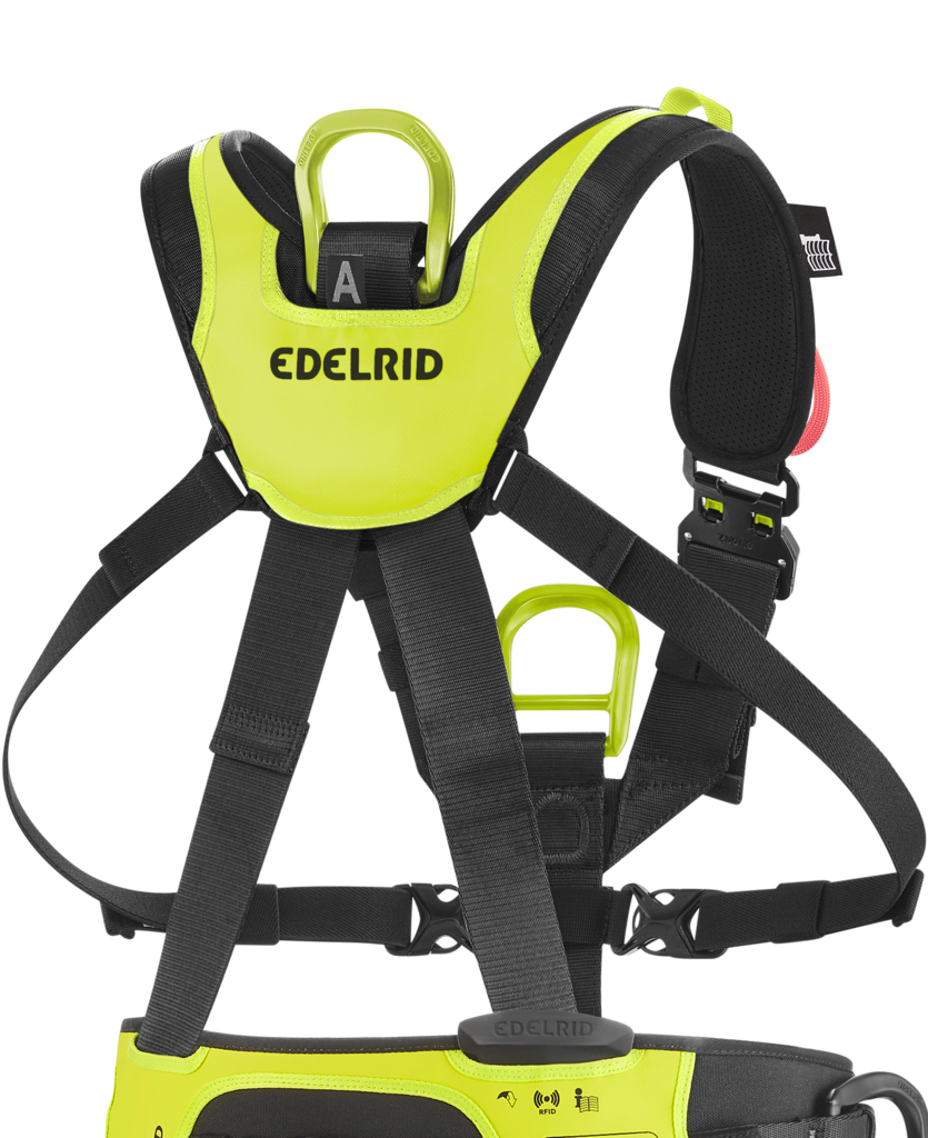 - 2 Schlaufen am Brustgurt zur Befestigung eines Sprechfunks oder zum Parken eines Auffanggerätes