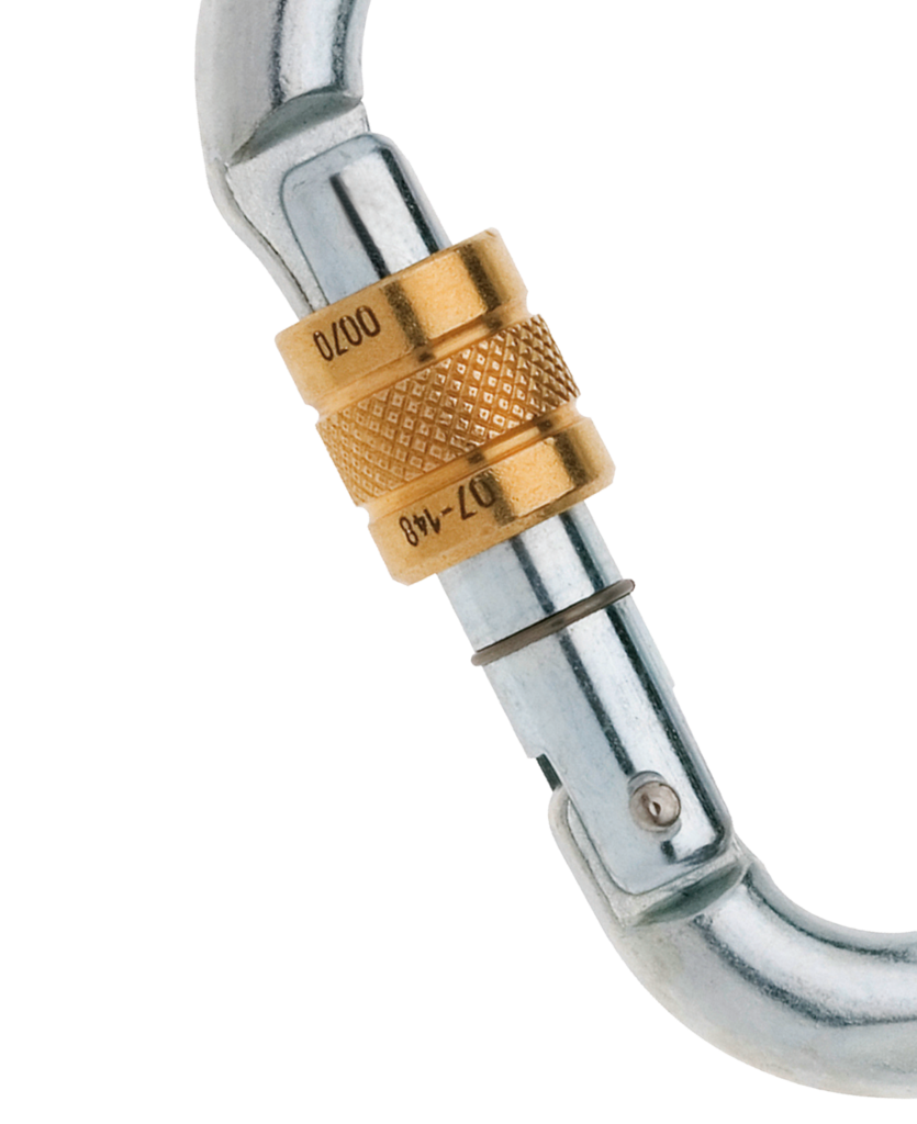 Vielseitiger Schraubkarabiner aus gehärtetem Stahl. Geeignet für den Einsatz bei der Feuerwehr, THW und Industrieklettern.