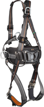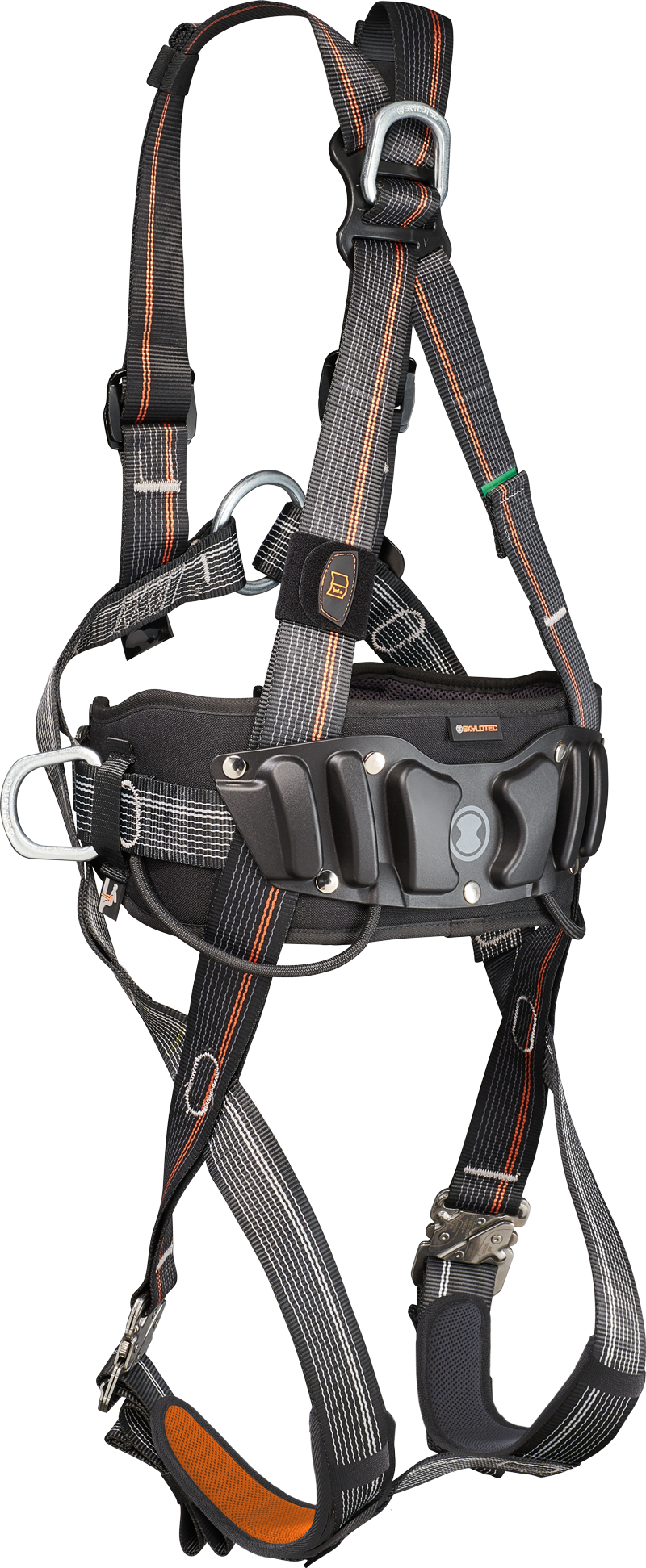 Das atmungsaktive Hüftpolster verteilt die Last gleichmäßig auf der Hüfte und wird durch eine robuste Gleitplatte zuverlässig vor Abrieb geschützt. Die dorsale und sternale Auffangöse lassen sich individuell an den Anwender anpassen – für optimalen Sitz und hohen Tragekomfort.