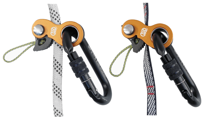 Die Klemme ist so konzipiert, dass sie mit einer Hand angebracht und bedient werden kann. In dem Karabinerloch mit 18 mm Durchmesser kann auch ein Schraubkarabiner vollständig gedreht werden.