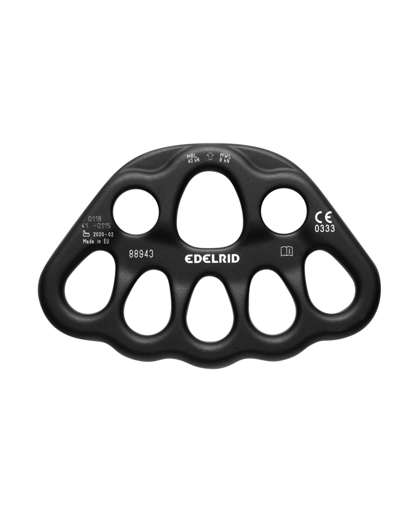 Eine große, leichte, 7 mm starke Riggingplatte mit 50 kN Höchstzugkraft. Sehr gut geeignet für komplexe Systeme. Sinnvolle Sortierung und somit guter Überblick.
