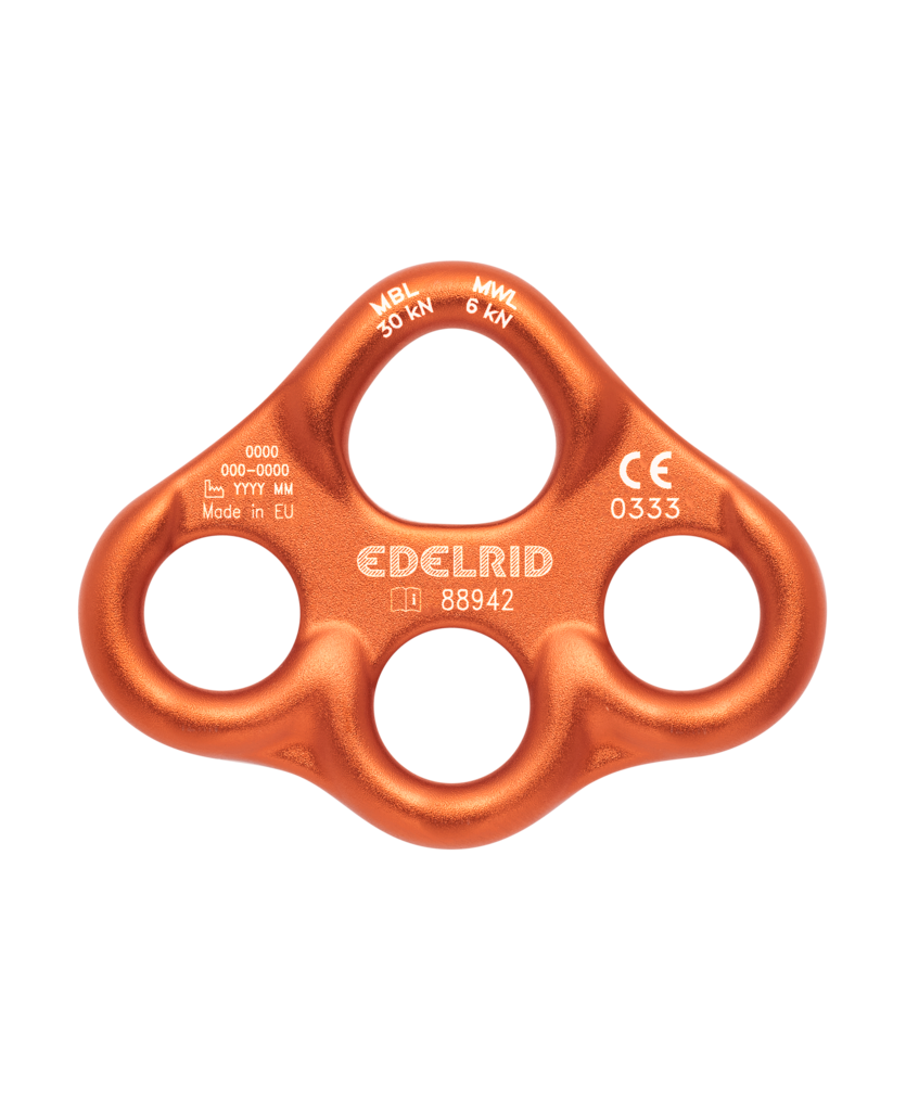 Eine kleine, leichte, 6 mm starke Riggingplatte mit 36 kN Höchstzugkraft! Lochdurchmesser je 20 mm. Sinnvolles Hilfsmittel um einen Anschlagpunkt auf drei zu erweitern. Die große Öffnung fasst bis zu 3 Karabiner.