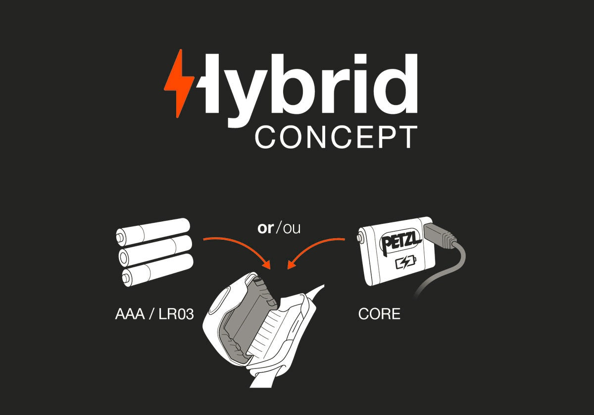 Die ACTIK CORE ist eine HYBRID-Lampe: Sie wird mit dem CORE-Akku geliefert und ist ebenfalls mit drei AAA/LR03-Batterien kompatibel.
