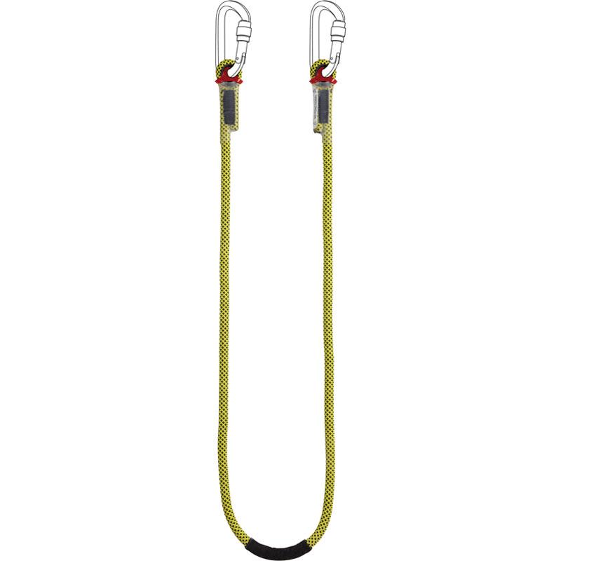 - vernähte Seilenden mit Seilkauschen, um das Seil zu schützen und je einem Pinch, um die Karabiner in Position zuhalten
