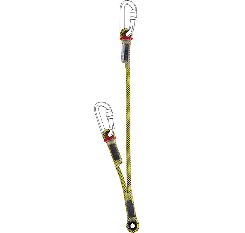 Das Dynapro V von Beal ist ein asymmetrisches Verbindungsmittel mit vernähten Seilenden. Die dynamischen Eigenschaften dieses Verbindungsmittels bieten gegenüber klassischen, statischen Verbindungsmitteln große Vorteile.