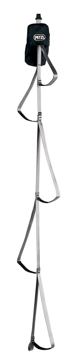 Die leichte Trittleiter von Petzl mit fünf Stufen eignet sich für technische Passagen beim Freiklettern oder als Hilfe beim Aufstieg am Seil.