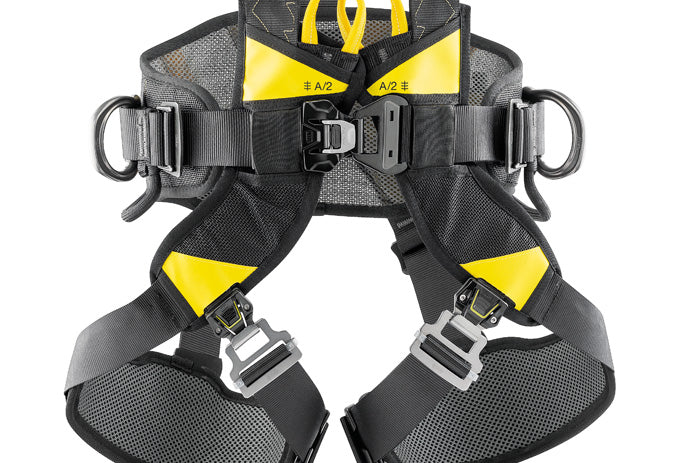 Er ist mit einer LADDER CLIMB-Steigschutzöse ausgestattet und für alle Einsatzzwecke geeignet (Aufstieg, Arbeitsplatzpositionierung und kurzzeitiges freihängendes Arbeiten) und ermöglicht das Einhängen eines Verbindungsmittels, eines Abseilgeräts oder eines Fallschutzläufers. Bei der vertikalen Fortbewegung an einem schienen- oder drahtseilgeführten System ermöglicht die LADDER CLIMB die Befestigung des Läufers in ventraler Position, so dass die Belastung auf dem Hüftgurt verteilt wird und ein optimaler Komfort gewährleistet ist. Im Falle eines Sturzes geht die Steigschutzöse automatisch in die sternale Position, um eine aufrechte Körperhaltung nach dem Sturz zu gewährleisten.