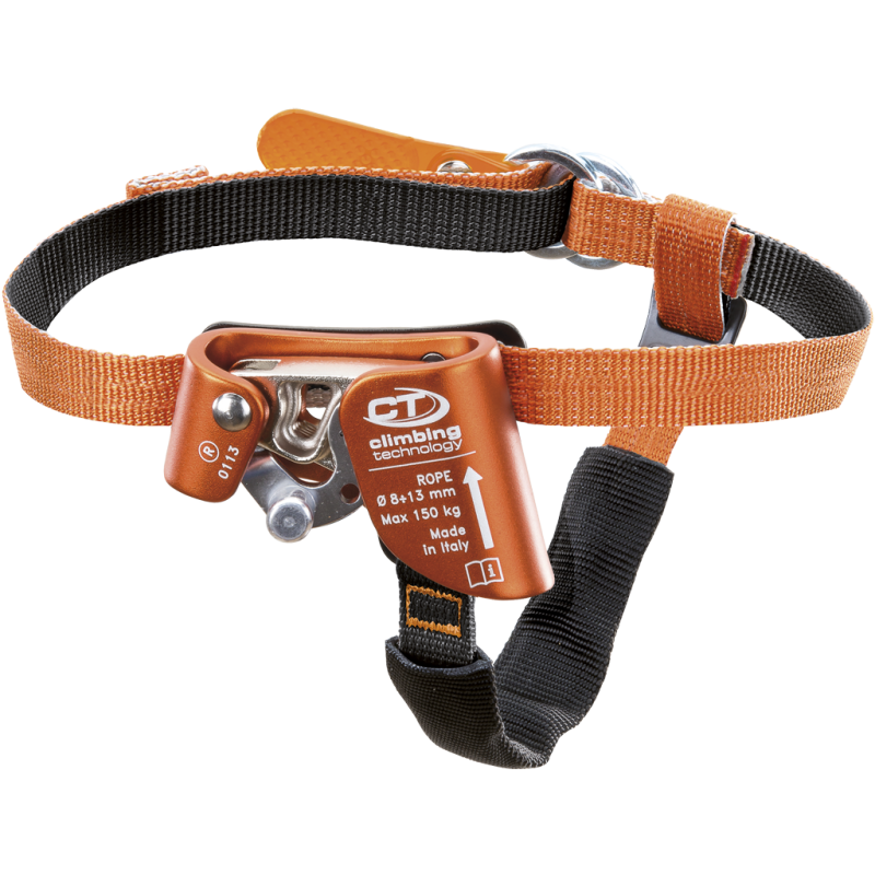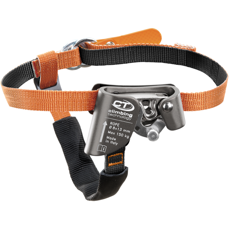 Die Fußsteigklemme von CT ist speziell für Höhenarbeiten und das Baumklettern konzipiert und bietet dank ihres integrierten Hebel-Nocken-Mechanismus eine kompakte, benutzerfreundliche Lösung. Die Nocke ist vollständig im Gehäuse integriert und selbstreinigend – sie greift zuverlässig, selbst bei verschlammten oder vereisten Seilen.