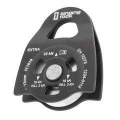 Große Umlenkrolle von Singing Rock für Arbeiten mit hohen Lasten. Durch die beweglichen, nah beieinander liegenden Seitenteile lassen sich auch Karabiner in D-Form als Anschlagpunkt benutzen.