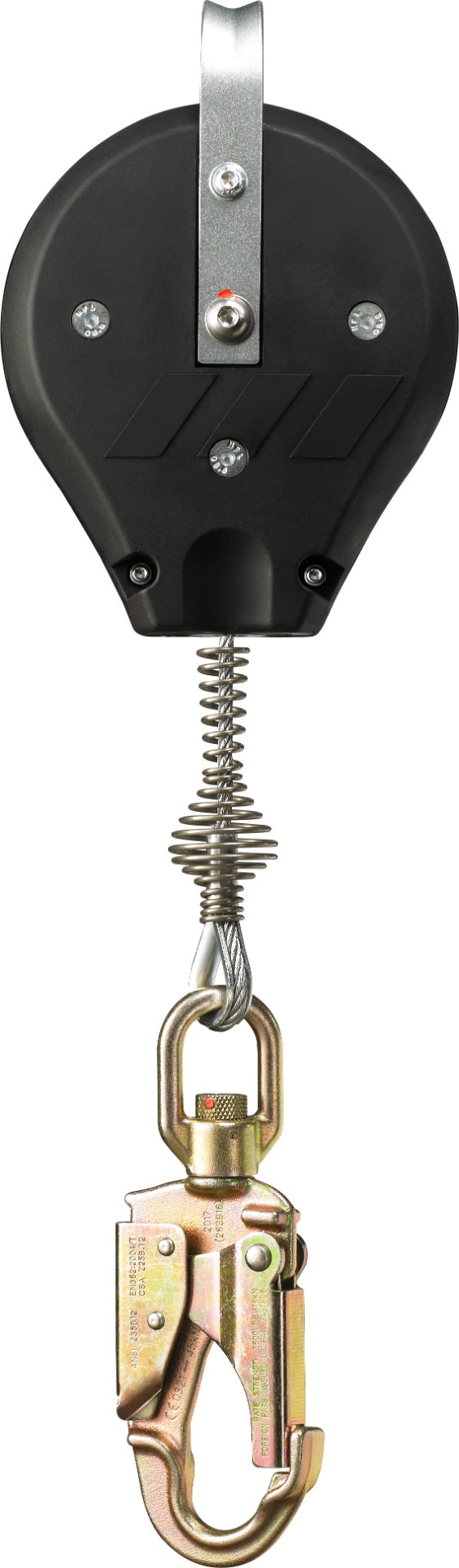 Hohe Bewegungsfreiheit bei gleichzeitig kurzer Fallstrecke - dafür steht dieses Höhensicherungsgerät. Der automatische Seilzug sorgt dafür, dass nur die tatsächlich benötigte Seillänge ausgezogen ist.