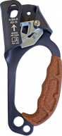 Diese klassische Steigklemme mit Handgriff ermöglicht einen deutlich effizienteren Aufstieg am Seil. Die ergonomisch geformten Griffe bieten eine breite Auflage für den kleinen Finger und eine spezielle Form für den Zeigefinger. Dadurch wird die Handhabung erleichtert und ein Abrutschen der Hand verhindert.