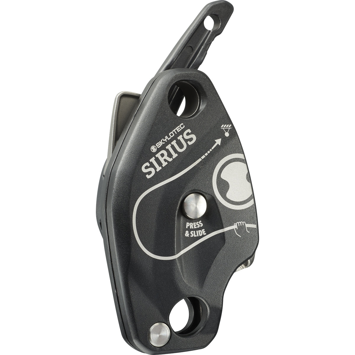 Der Hebel ist zusätzlich mit einer Öse versehen, an der man z.B. eine Reepschnur befestigen kann, um das Gerät aus der Entfernung zu bedienen. So kann man im Rettungsfall das Sirius des Verunfallten aus Distanz ablassen oder das eigene Gerät simultan zum Zweiten bedienen um gemeinsam Abzuseilen. Im oberen Bereich ist das Abseilgerät mit einer Öse ausgestattet, um es in einem einfachen Flaschenzug zu verwenden, z.B. für den schnellen Transport von Arbeitsmaterial und Werkzeugen zum Einsatzort.