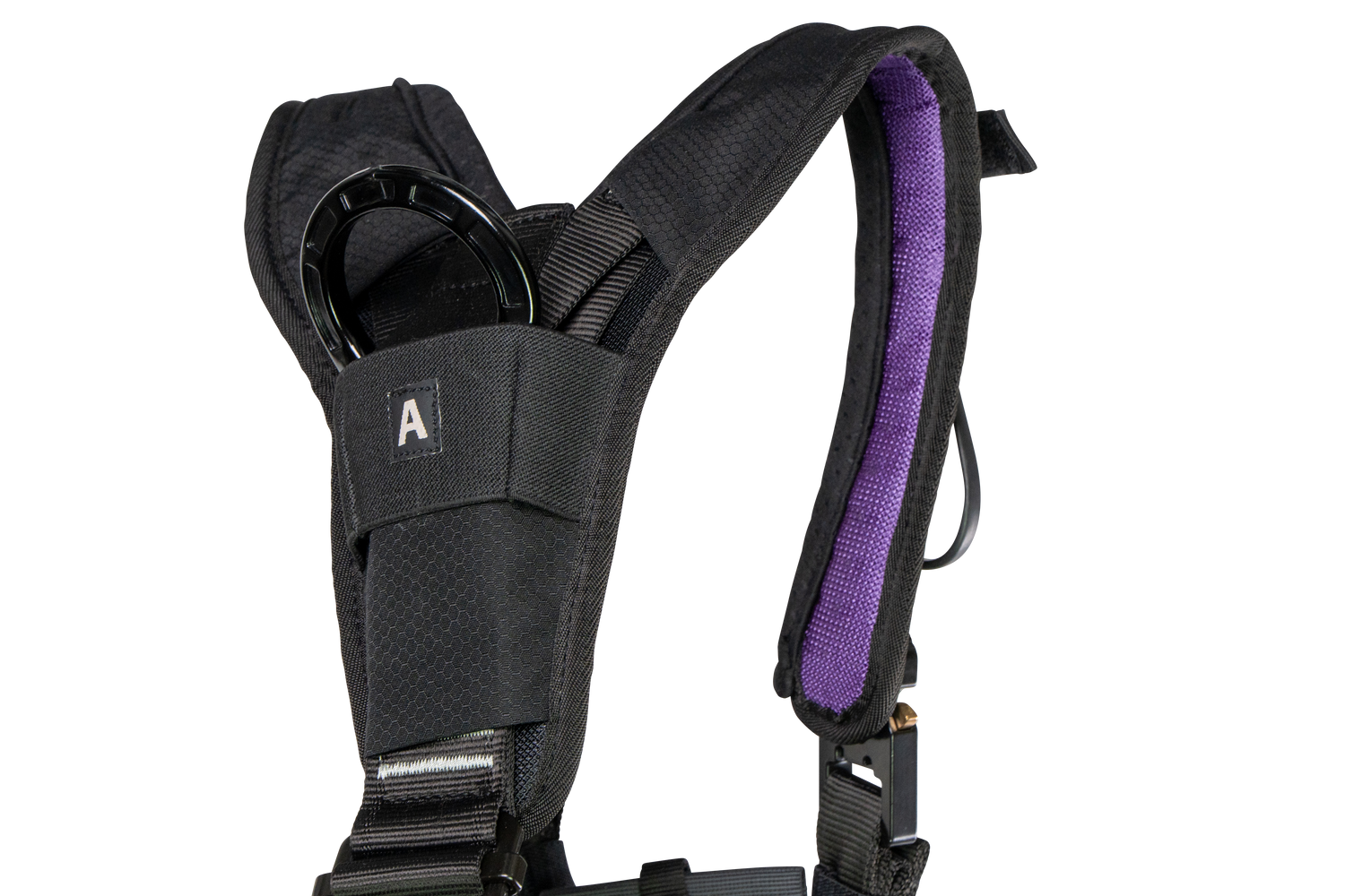 Er ist äußerst bequem und passt sich mit den 11 Einstellpunkten perfekt an alle Körpertypen an. Der Gurt hat gepolsterte Schultergurte und Beinschlaufen, Schnellverschlüsse und mehrere Materialschlaufen.