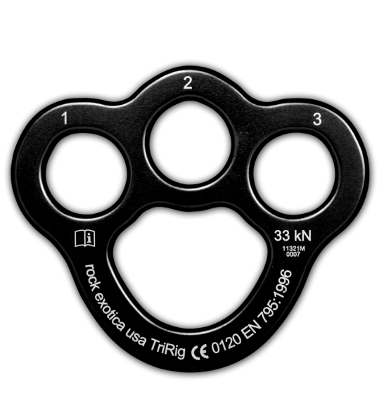 Rock Exotica TriRig - Riggingplatte Ultraleichte Riggingplatte mit drei 19 mm Löchern und einem großem Loch. Gern von Riggern und Industriekletterern zum Lastentransport genutzt.